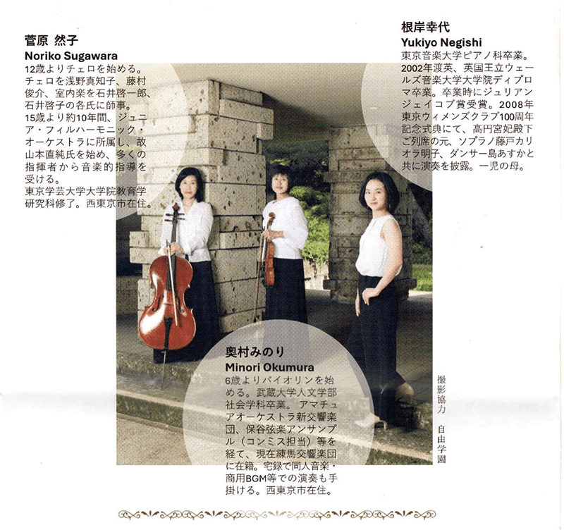 チェロを浅野真知子、藤村俊介、室内楽を石井敬一郎、石井啓子の各氏に師事。